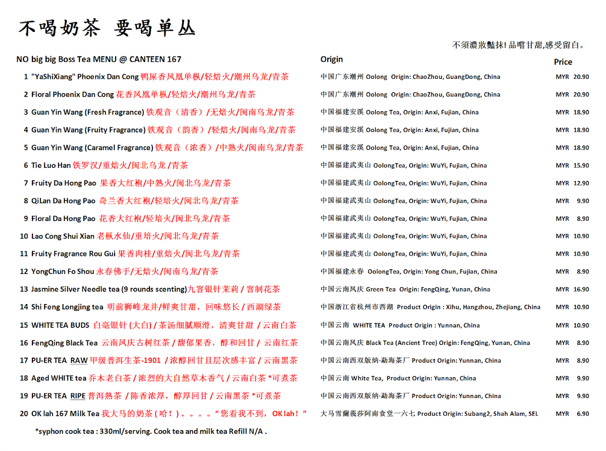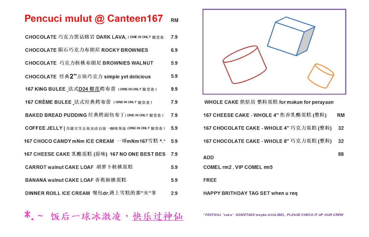 Canteen 167, nestled in the heart of Shah Alam, is a vibrant cafe that boasts a diverse menu inspired by Japanese flavors, traditional pasta, and comforting rice dishes. The highlight of their offerings includes the Japanese Curry Spaghetti and Carbonara Spaghetti, each priced at a wallet-friendly MYR 11.90. For those who crave something heartier, their Lasagna, available in chicken or beef, is a must-try at MYR 14.90, paired perfectly with a fresh salad.